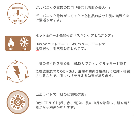 ・ガルバニック機(陰イオンで化粧水や美容液の浸透)